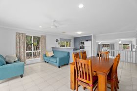 Living: Step inside and be welcomed by a spacious lounge room featuring plush carpet, abundant natural light, and air conditioning for year-round comfort. A few steps up leads you to the second living area — a bright, open space that flows seamlessly from the kitchen through to the outdoor entertaining area, creating the perfect setting for family gatherings or relaxed everyday living.