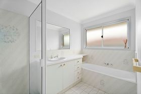Bedrooms: This home offers three generous bedrooms, each featuring plush carpet, ceiling fans, and built-in robes for comfortable, practical living. The master bedroom enjoys a private position, complete with mirrored robes and its own ensuite. Step down to bedrooms two and three, both impressively sized and fitted with built-in robes and ceiling fans — perfect for family, guests, or a home office.